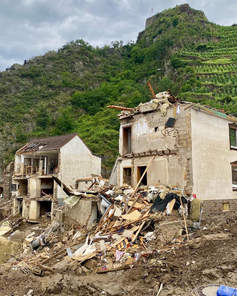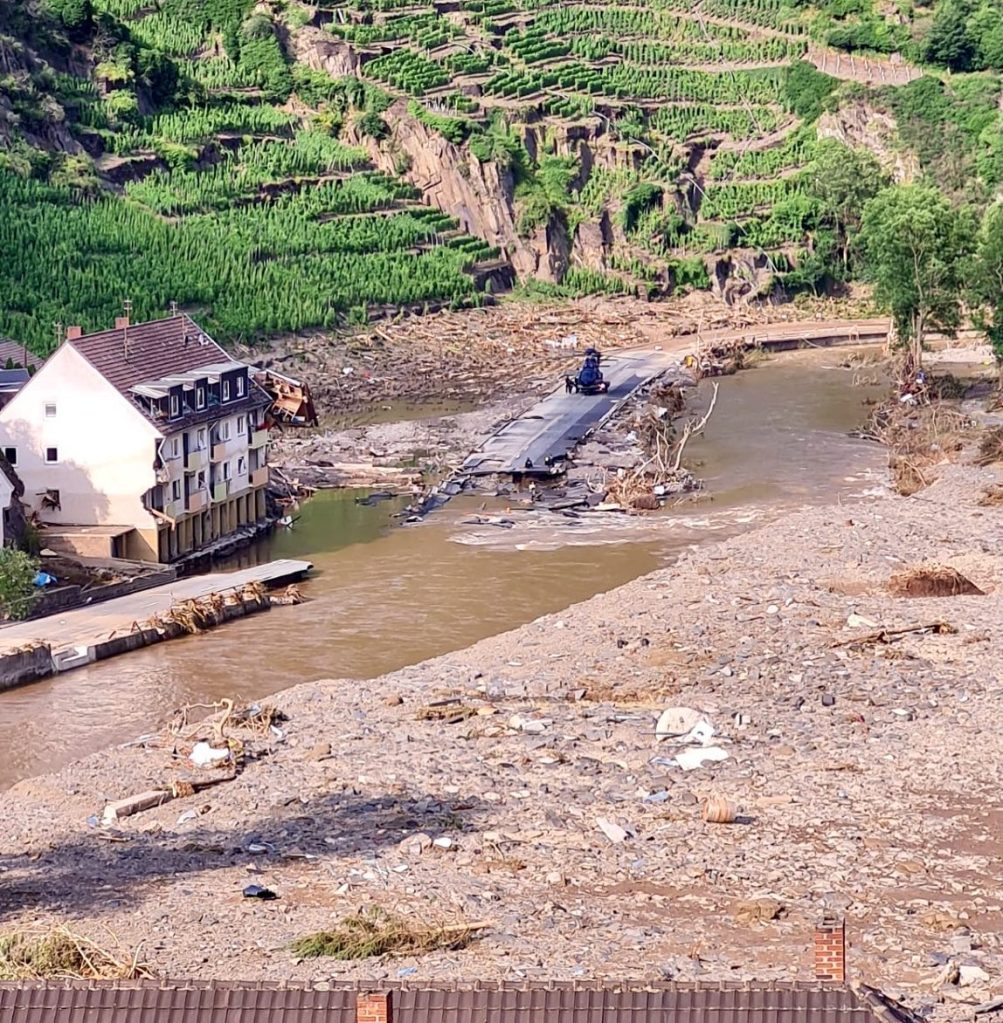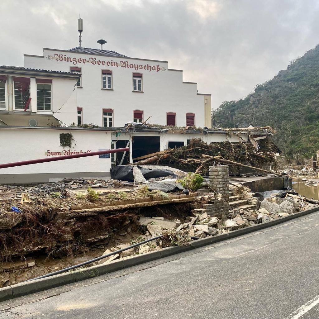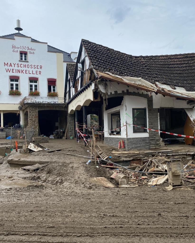 Water, power, telephone, gas, and internet service for Mayschoss were lost for quite some time. The main highway serving Mayschoss was washed out. To limit traffic so rescue and support vehicles could get to Mayschoss, visitors were discouraged. The only travel routes open were through what we would call ‘back country roads’ that approach the town through the hills and mountains.