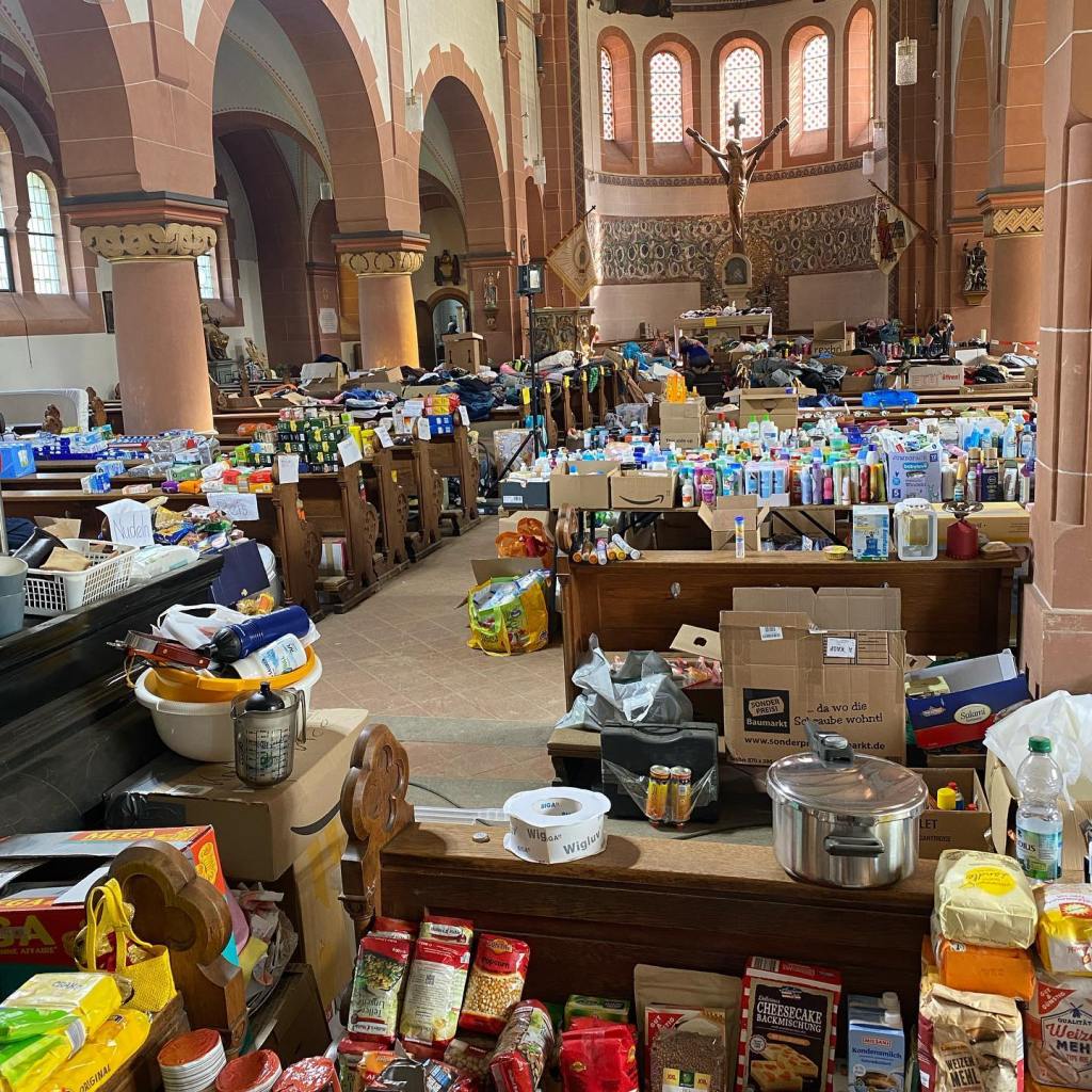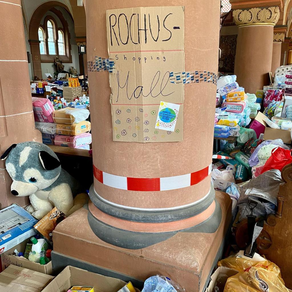 A relief center was established in the Catholic church. ‘Rochus’ on the sign is the patron saint of the church.