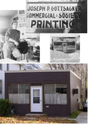 Grandpa Joe was a printer, just like his dad, Frank Gottsacker Sr. Frank Sr. was the first Gottsacker to enter the printing business and was a prominent figure in Sheboygan in his time. Frank Sr. was editor and owner of the National Demokrat (spelled correctly) and was very active in Sheboygan’s economic, social and political life. Grandpa Joe, on the other hand, was a quiet, unassuming guy who loved his family and despite being a business owner, was a life-long democrat and always voted according to the Printer’s Union recommendations, just like my dad. Below is Grandpa Joe and his print shop in what looks to be a bad winter in Sheboygan in 1942. At the bottom is the same building in 2004.