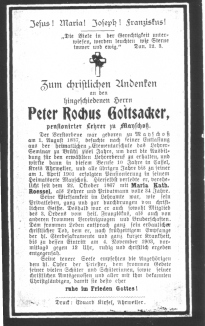 To protect the privacy of currently living Gottsackers, there are no links to the Gottsacker family tree on this site. If you are a Gottsacker family member or are researching genealogy links with the Gottsacker family, please send an e-mail to gottsackerj@yahoo.com requesting access.